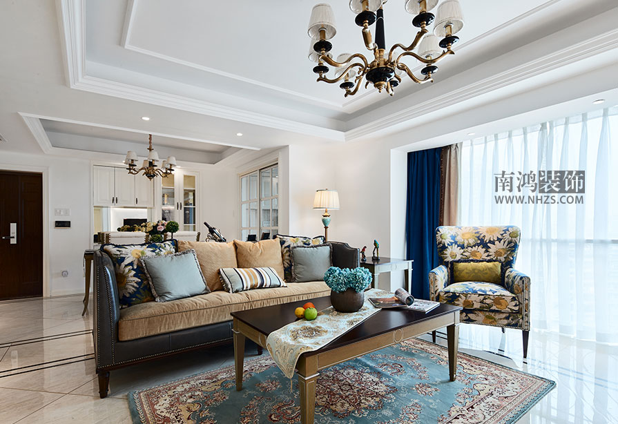 挑高空間設計吊頂,一般需要搭配燈飾以及單層或多層裝飾線條進行修飾,巧妙地提升空間層次。
