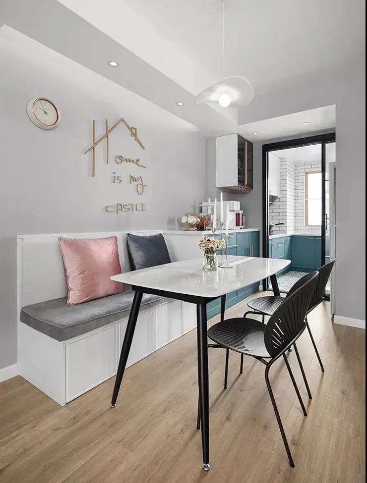 西廚雖然是廚房的一部分,但畢竟中西分開,柜體樣式上不用與中廚統一,反而應該將其與關系更加密切的客餐廳視作一個整體來進行打造。