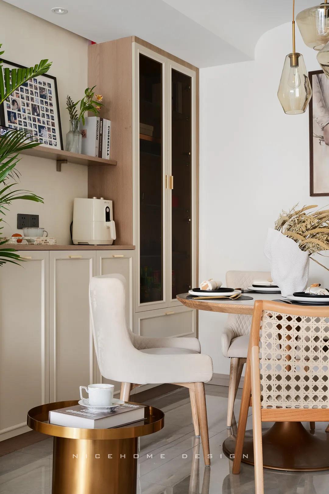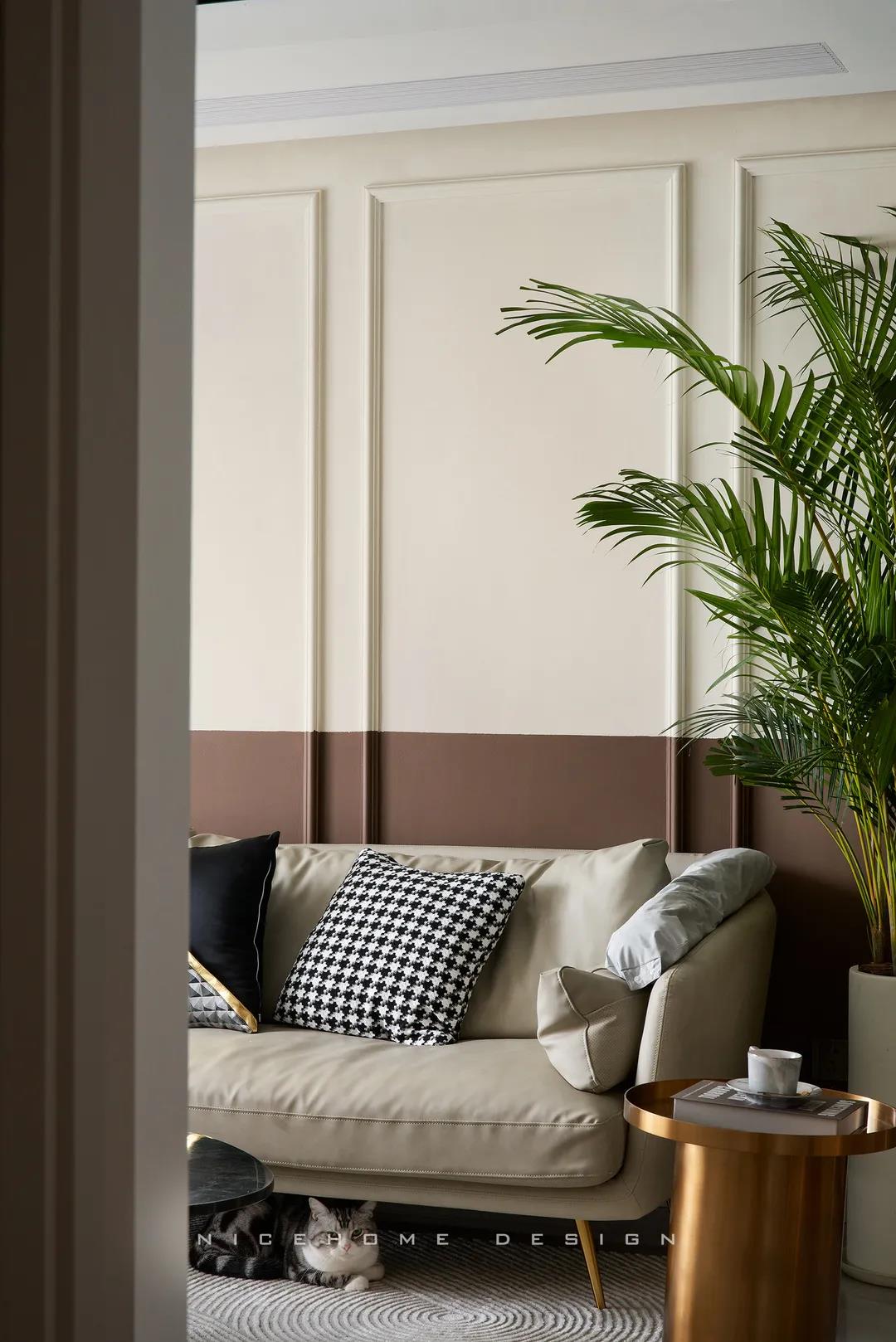 【項目·信息】 地址 / 龍湖春江天璽 戶型 / 兩室兩廳 面積 / 90㎡ 風格 / 現代風格 設計施工 / 浙江南鴻裝飾 ■ 關于屋主 本期的屋主是一位性格開朗的美麗女生,單身獨居,有兩只愛貓,本人從事媒體行業,對新家的設計有著較高要求。(小姐姐原本找的是設計公司,后來經親戚的介紹找到了南鴻,在這里要感謝小姐姐對我們的信任啦~) ■ 關于作品 如設計師所言,這套作品的風格其實并不能說完整統一,但所有混搭的元素放在一起,又相當自然協調,絲毫沒有雜亂的感覺,色彩選擇上也非常符合年輕人的口味。 Literary Style 總之,這兒的一切布置都是以宜居、舒適、溫馨為主,力求還原主人對家的所有美好期待。 ■ 關于戶型 ▲原始結構圖 ▲平面設計圖 區域整體改動不大,主要是將主臥的面積擴大,北面房間改為衣帽間,內部的衛浴室也做了空間及視覺上的延伸。 01. 客廳 LIVING ROOM “家”的定義是什么?對很多人來說,家應該是一個能讓自己卸去疲憊,認真地放空思緒,無所顧忌地虛度某些時光的空間所在。家是自由的,隨意的,它會包容我們所有的任性和小情緒。 客廳展現出純凈而輕盈的美感,來源于細腿的家具,懸空的電視柜和吊柜,還有溫柔的色彩鋪陳。頂面是無主燈,還特意做了圓弧角處理。 顏色可以直觀體現屋主的喜好。上淺下深的半墻設計佐配石膏線,散發出濃郁的復古情調,彰顯著主人的生活品味。 客餐廳同處一個空間,氣質上相互聯結,中間一盆大植栽,巧妙成為兩邊的分界。 02. 餐廳 DINING ROOM 餐廳處的元素混搭得很多,看起來卻不會眼花繚亂。淺淺的大地色鋪敘自然感美學氛圍,讓這里的每一餐美食都成為了享受。 自然感家居少不了藤編元素的加入,墻上再掛一幅文藝畫,便能做點睛之筆。至于收納,兩組高矮柜子和一層擱板,可以將各類物品安置得井井有條。 ▲喵喵簡直完美融入 03. 過道 CORRIDOR 過道墻面保持潔凈的白色,拱形門洞造就別具一格的空間體驗。 04. 廚房 KITCHEN 廚房不大,屬于剛剛好適合一個人下廚的面積。粉粉嫩嫩的顏色,正是主人的心頭好,傳遞著微妙的浪漫因子。櫥柜統一選擇無把手式,保證視覺上的清爽。 05. 臥室 BEDROOM 主臥房的采光極好,陽光灑進屋子,整個就像被和煦的光輝浸泡著,恬靜溫暖。背景墻用墻紙與乳膠漆結合,優雅的紫紅色向我們透露著一位成熟女性的美麗端莊。 猶抱琵琶的朦朧美感,有時更能引發我們關于美的想象。主衛與睡眠區之間安入了一段壓花玻璃隔斷,以其自身的凹凸質感與光線折射暈染,賦予空間曼妙體驗。 北面房間改成的衣帽間,柜體的分區+封閉式設計既讓日常衣物收納更加高效,也為主人省去了諸多打理時間。 次臥做父母或朋友來時的住處,素雅的背景有利于營造讓人安心的環境,不對稱的床頭避免了無趣的發生。飄窗墻面設計壁龕,用來收納一些雜物。 06. 衛生間 BATHROOM 兩個衛生間風格一致,深淺色的搭配讓這里既干凈明朗,又具備時髦氣質。角落里擺放花卉和綠植,默默傳達著女主人對這個家,對生活的滿滿熱愛~